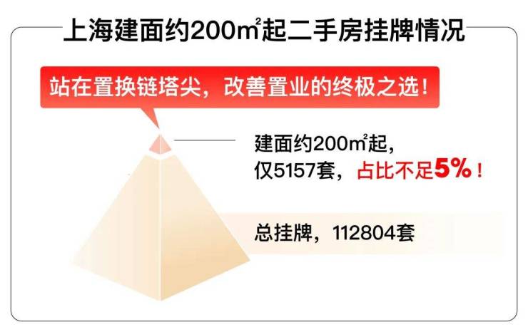 据链家多个方面数据显现,全市建面约200㎡起的改进产品,站在置换链的塔尖,仅有5157套挂牌,占比缺乏5%,臻稀程度显而易见。