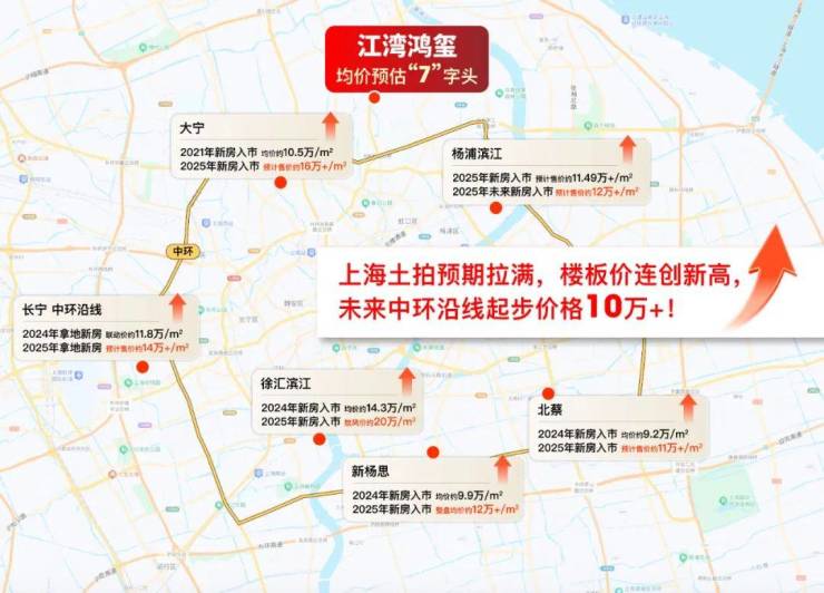 尤其是中环沿线,续徐汇滨江之后,长宁天山,静安大宁,杨浦滨江,浦东北蔡、新杨思等区域相续迎来单价“地王”,未来价格不断加码。