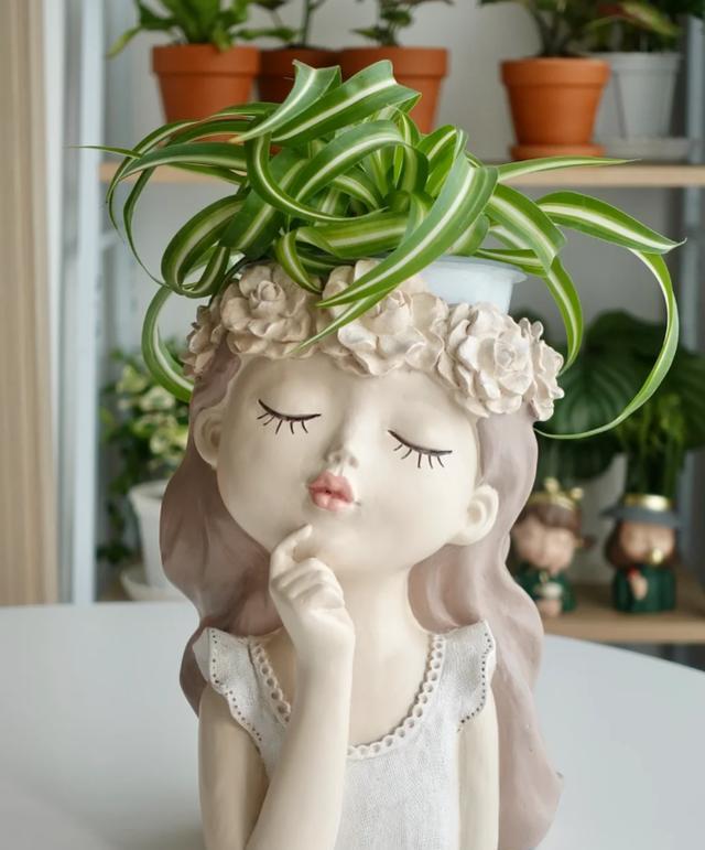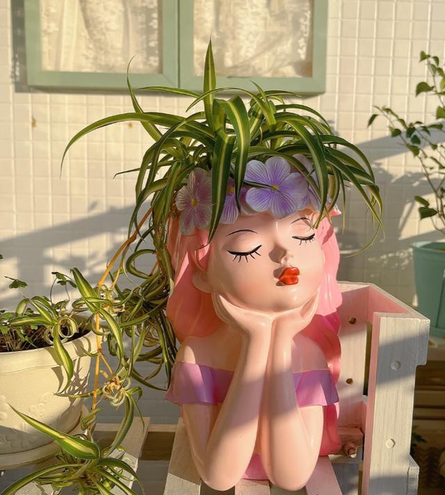 更鸡贼的是她选盆。市道盛行的“仙女陶瓷盆”压根不透气,多肉掉坑里一批又一批,唯一吊兰这种“喜湿又怕涝”的体质能扛。她成心把盆口做窄,土面压一层白色陶粒,视觉洁净,还能掩盖“懒人三天一洒水”的痕迹。摄影时用暖光台灯打旁边面,陶瓷釉面反光,像开了柔焦滤镜,一般绿植被抬成“莫兰迪色”,学废了吗?
